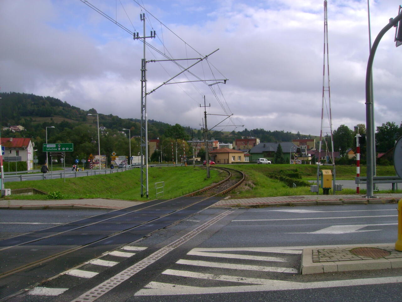 Tagi: panoramy/widoki ogólne, przejazdy i przejścia naziemne (drogowe), sygnalizacja/słupki/znaki itp., szlak (trasa)/pojedyncze tory