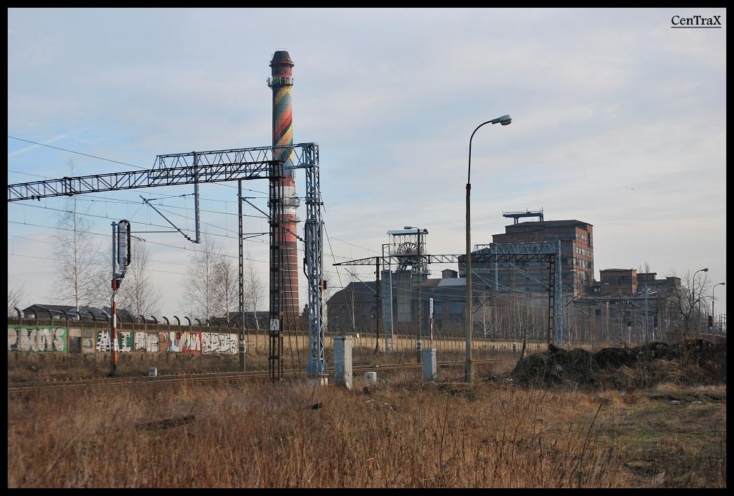 Z tyłu po prawej stronie wznosi się linia kolejowa 654 (Szabelnia - Katowice Szopienice Północne), aby przejść wiaduktem nad linią numer 1 (Warszawa Zachodnia - Katowice).