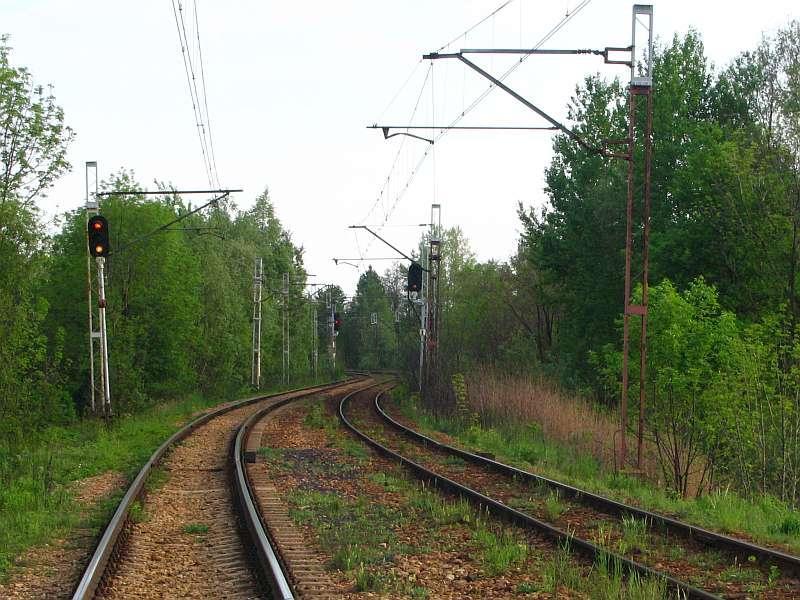 Widok na szlak w kierunku Mysłowic z równi stacyjnej po zlikwidowanym torowisku KWK Mysłowice.