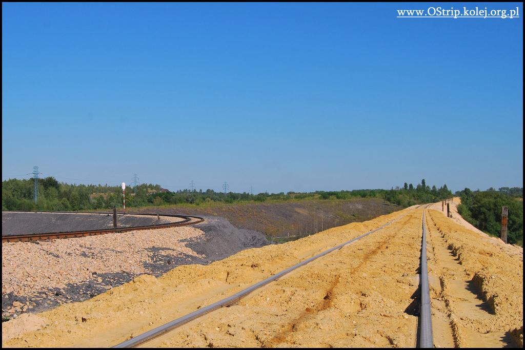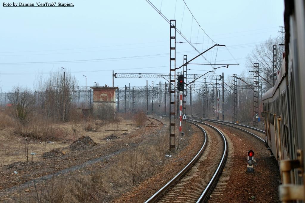 Widok w kierunku stacji Brzeziny Śląskie. Po lewej widać tor bocznicy w kierunku KWK Julian (ZG Piekary).