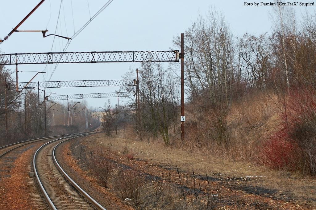 Po prawej stronie tor do stacji Brzeziny Śląskie, widok w stronę Bytomia.