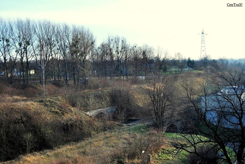 Widok na elementy wiaduktów nad ul. Przyjaźni oraz zlikwidowany tor w kierunku PSSa.