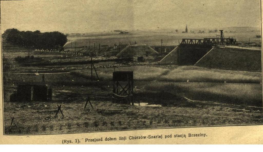 Fragment budowy, dwutorowej 13 km linii Chorzów - Szarlej. Źródło miesięcznik Inżynier Kolejowy nr 4 z 1930 roku.