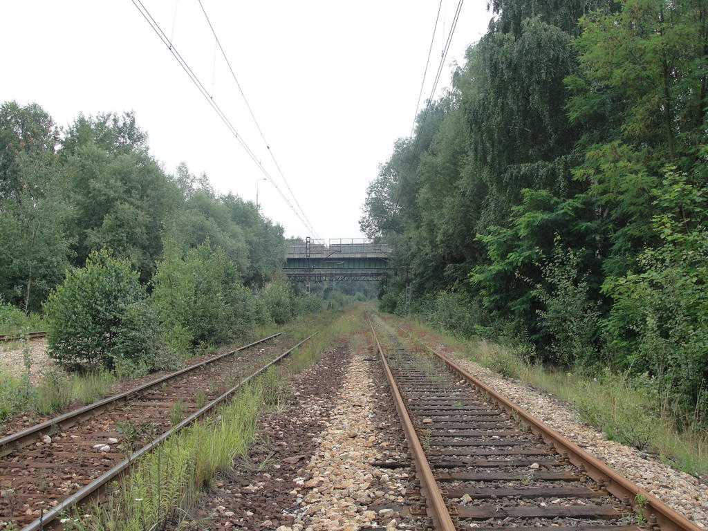 Widok w stronę posterunku Stawiska. Tor wyłączony z eksploatacji, a prawy już od lat.