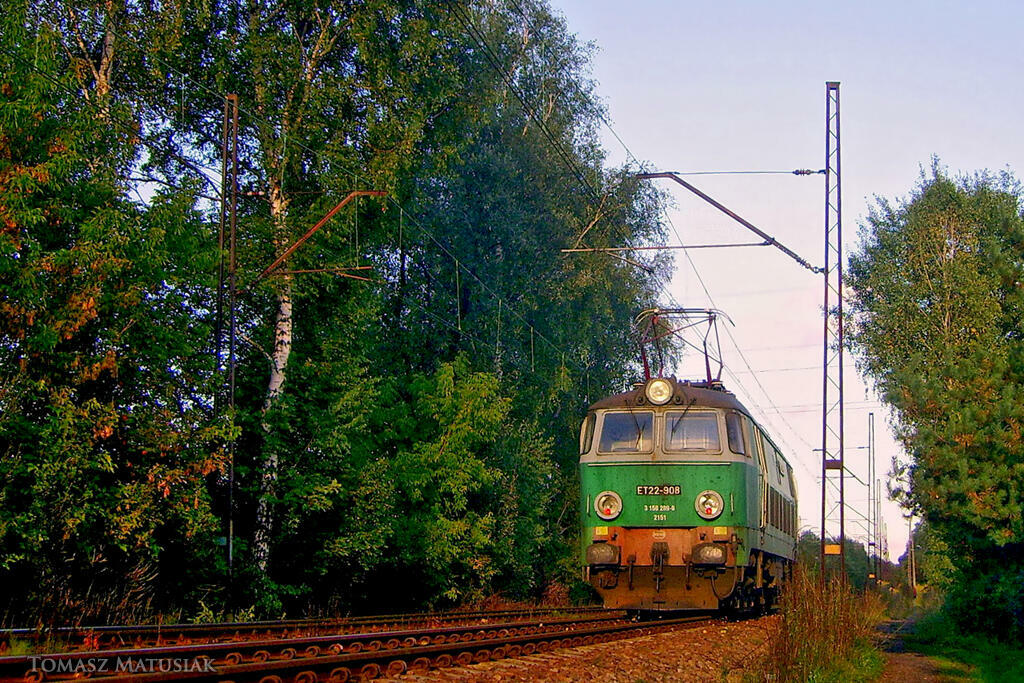 ET22-908 jedzie linią 171 w kierunku podg Dorota po drodze mijając jeszcze posterunek bocz. Juliusz.