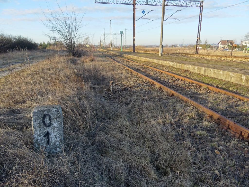 Słupek hektometryczny 10.9 oraz torowisko w kierunku Raciborza.