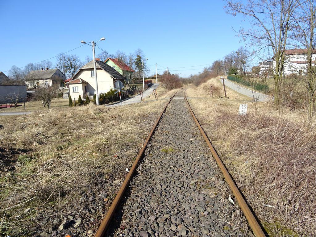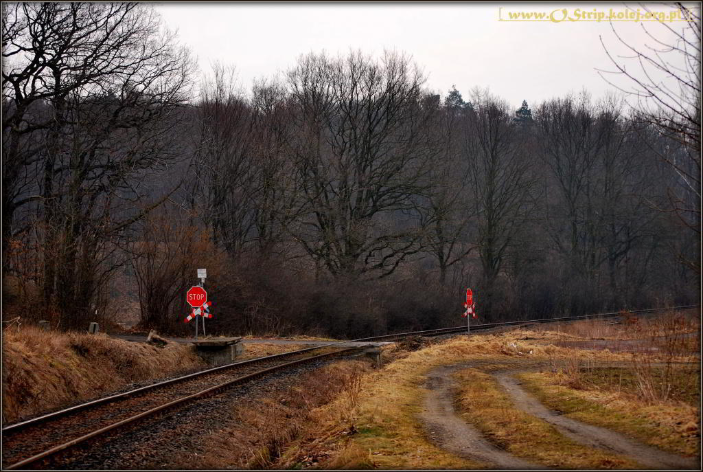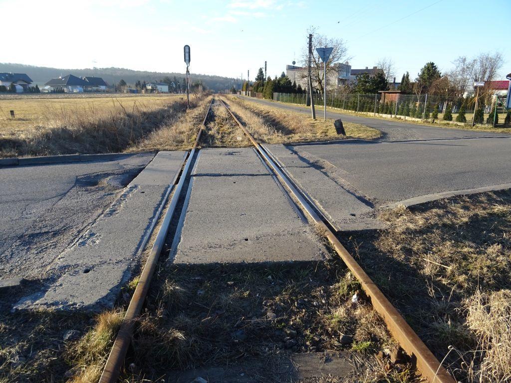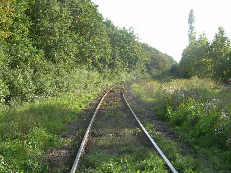 W tym miejscu linia biegnie już po śladzie zlikwidowanej kolei wąskotorowej.
