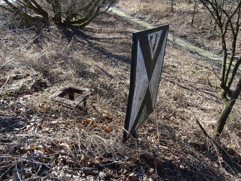 Tarcza ostrzegawcza zniknęła, ale „Wskaźnik usytuowania” W 1 pozostał na swoim miejscu(km 13.0).