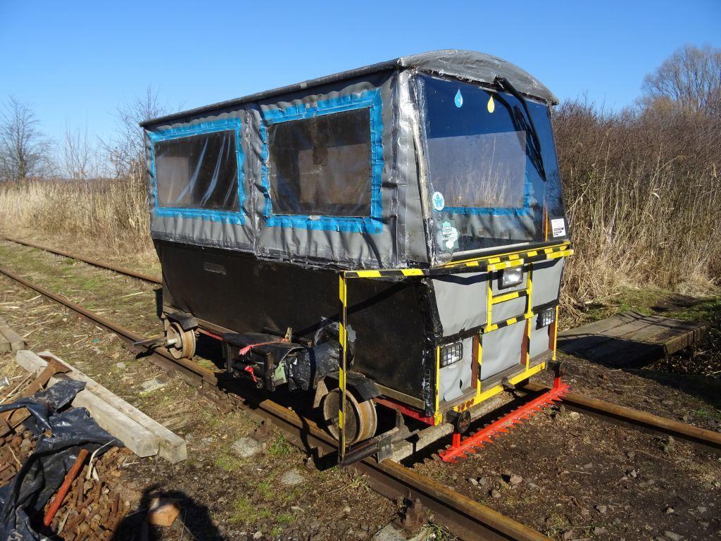 Drezyna Towarzystwa Entuzjastów Kolei na skraju miejscowości Bluszczów.