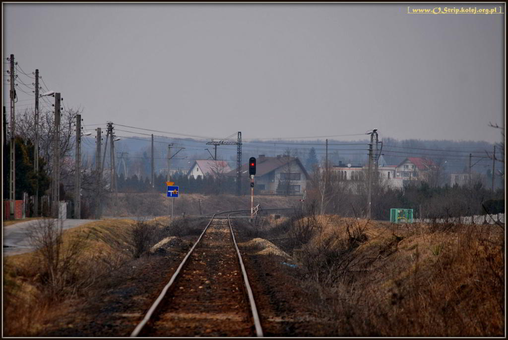 Widok na ostatni odcinek linii. Widać semafor wjazdowy stacji Racibórz Markowice. a w tle linię KK - Chałupki.