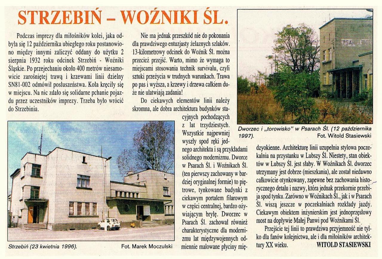 Niemcy nie zdążyli dobudować połączenia do Myszkowa i tak zostało; za czasów PRL nie robiono remontów, połączenia w Strzebiniu nie były za dobre, pociąg powinien jeździć do stacji Kalety - tam było więcej połączeń od Lublińca, a pasażerów ubywało, co było na rękę PKP żeby mieć usprawiedliwienie, że linia nierentowna. Datę otwarcia linii na podstawie artykułów z gazety są sprzeczne.
