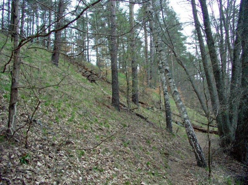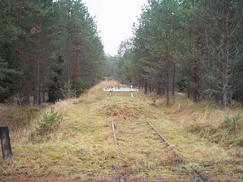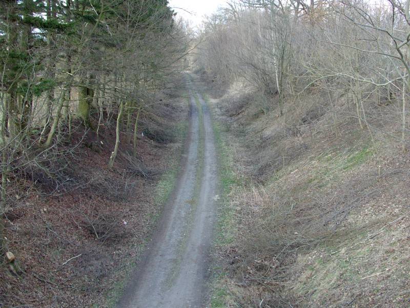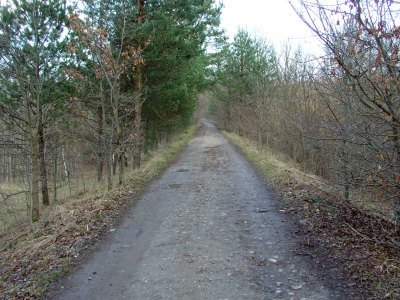 Widok na nasyp dawnej linii kolejowej ok. 2 km przed stacją Pomysk.