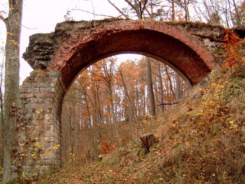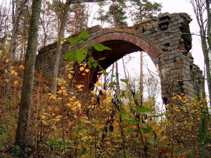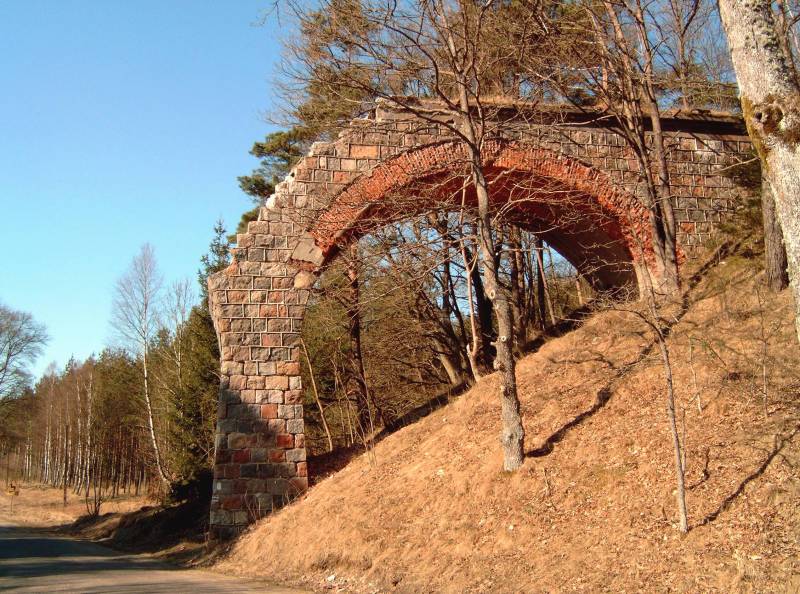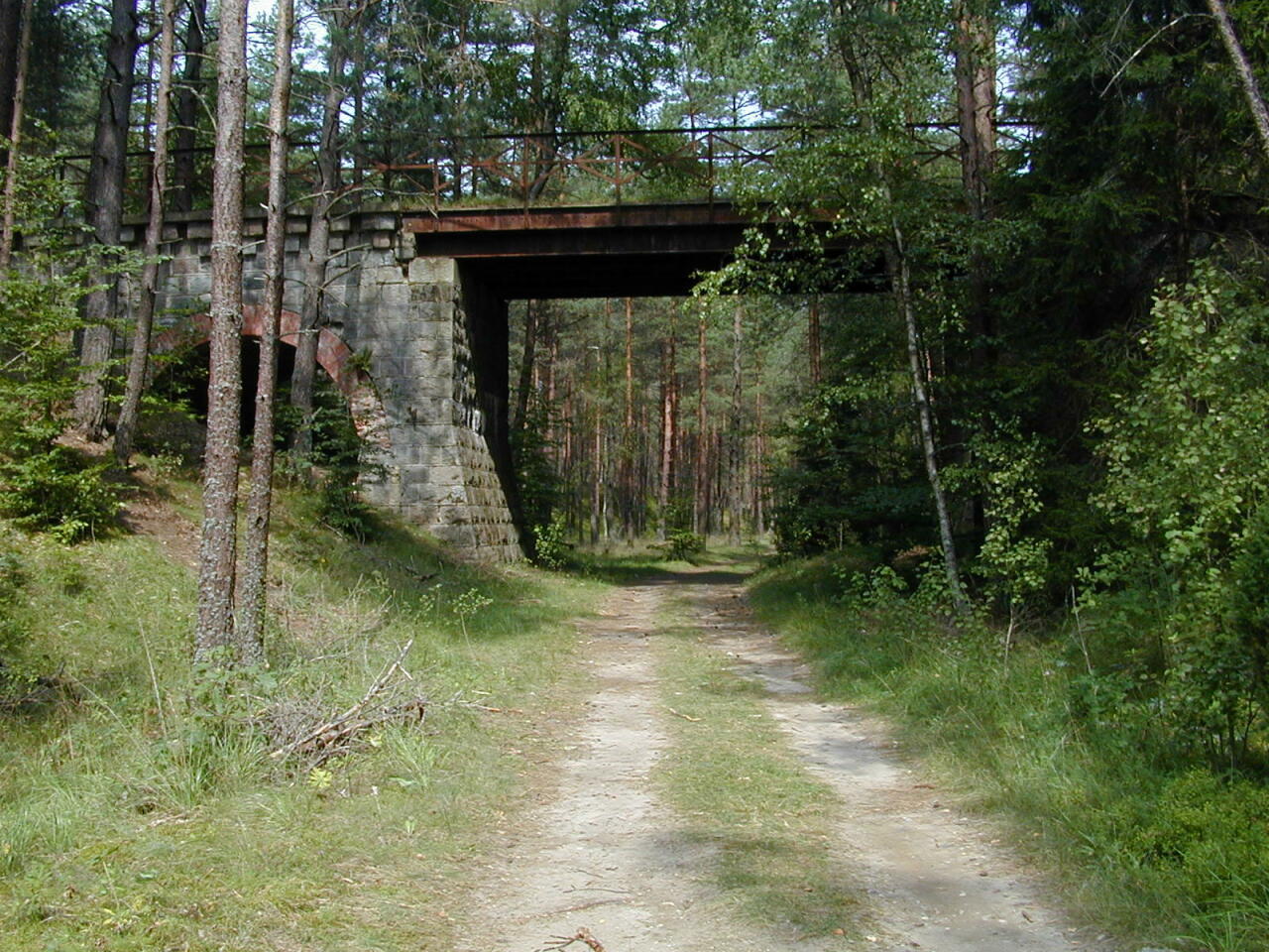 Jeden z wielu przepustów pod dawną linią kolejową ok. 2 km przed stacją Pomysk.