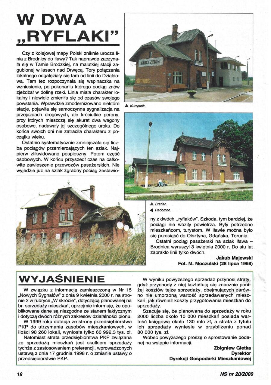 Ale ruch po tej linii służył także miejscowym, dla których kombinacja, o której wspomniałeś, zda się psu na budę. To była jedna z wielu linii zaoranych przez świetlaną politykę kolejnych rządów i zarządów PKP względem lokalnych przewozów kolejowych. Jeszcze w latach 90. jeździło 7-8 par pociągów na dobę, z czego w pełnej relacji 5-6 par, a więc całkiem nieźle i to w porach, dających możliwość dojazdu do pracy i szkół na stacjach końcowych, także przesiadek, zwłaszcza w Iławie. Pod koniec lat 90. PKP nagle zwija zabawki i pokazuje pasażerom fakersa, bo tak. Niech ludzie jeżdżą autobusami. Samorząd i rząd umywa ręce, a może nawet po cichu przyklaskują takiej polityce, w obliczu rychłego usamorządowienia przewozów pasażerskich - odpadł kolejny "problem". Tak samo załatwiono ruch do Sierpca, gdzie niedawno z wielką pompą uruchomiono 1! pociąg IC na dobę... standard godny państwa afrykańskiego. Obecnie odbudowa tej linii będzie prawie niemożliwa, pytanie także, czy w obliczu współczesnych potrzeb, wyludniania się mniejszych miejscowości i masowej motoryzacji - w ogóle potrzebna? Z tym, że właśnie masowa motoryzacja indywidualna i wyludnianie się miejscowości, to skutek m.in. fatalnej oferty transportu zbiorowego, uniemożliwiającego nieraz normalną egzystencję.