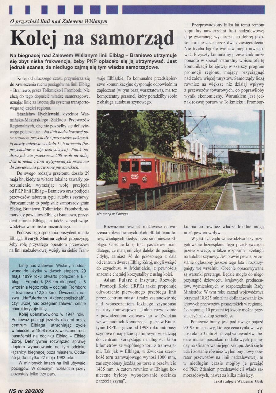 @Błażej Kopka: To albo masz coś z głową, albo nie umiesz czytać ze zrozumieniem. Nigdzie nie pisałem o żadnym EZT, tylko o możliwości uruchomieniu dodatkowego połączenia na szlaku, który funkcjonuje od zawsze, czyli przez linię kolejową nr 220 i 204. W Elblągu prowadzona jest przesiadka na autobus szynowy, który jeździ między Elblągiem, a Fromborkiem lub Braniewem, a to jest jedna z wielu możliwych opcji.