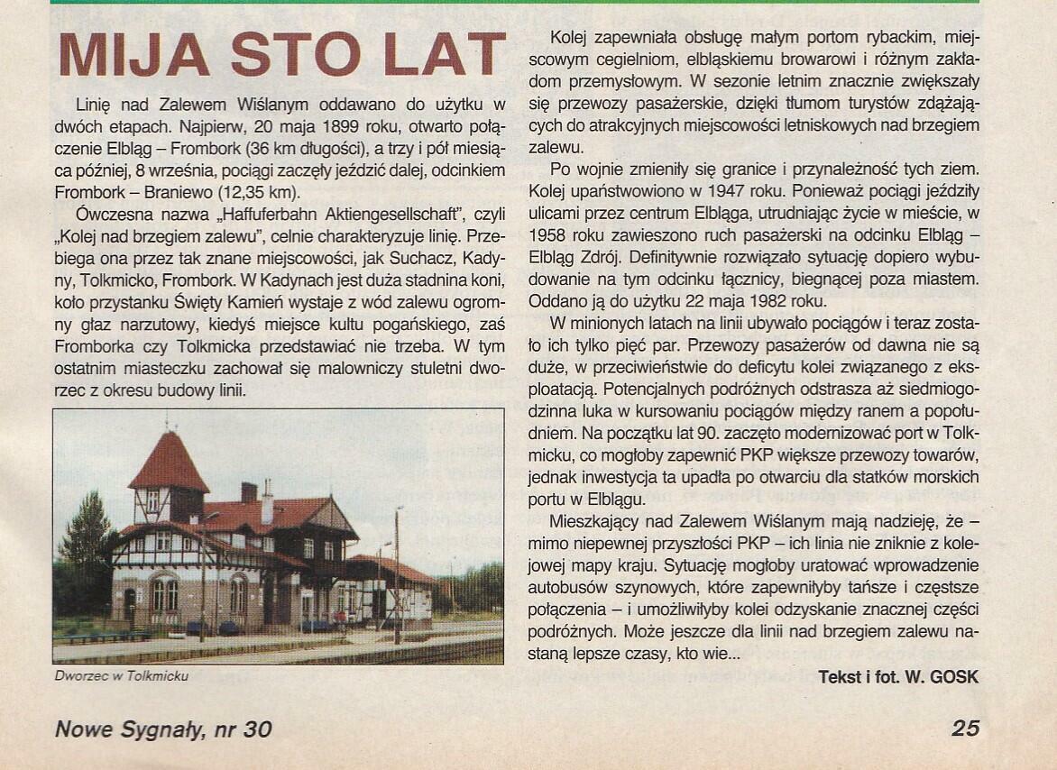 Bardzo fajnie, że coś się "zadziało". Wynika z tego, że wybrano najbardziej atrakcyjny turystycznie, 12 km. odcinek Tolkmicko - Frombork, pięknie położony, niemal w 80 % w lesie i terenie zalesionym, tuż nad brzegiem zalewu, niekomplikujący ruchu drezyn (praktycznie zero skrzyżowań z drogami publicznymi, nie licząc Tolkmicka, ale tu drezyny mogą startować nie z torowiska stacji, tylko z odcinka np. już za ul. Parkową). Pozostałe 10 km. z Kamiennicy Elbląskiej do Tolkmicka posiada nie tylko kilka używanych przejazdów drogowych - w różnych miejscach - komplikujących bezpieczeństwo poruszania się po torze, ale również liczne punkty (w miejscowościach Połoniny, Nadbrzeże, Suchacz, Pęklewo, Kadyny, i ich okolicach), gdzie po nieczynnej od lat linii kolejowej, okoliczna ludność jak i turyści oraz plażowicze, poruszają się bardzo często dzikimi przejściami przez tory, niekiedy wręcz dłuższymi odcinkami torowiska.