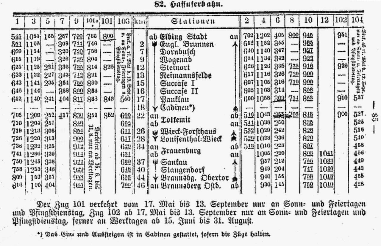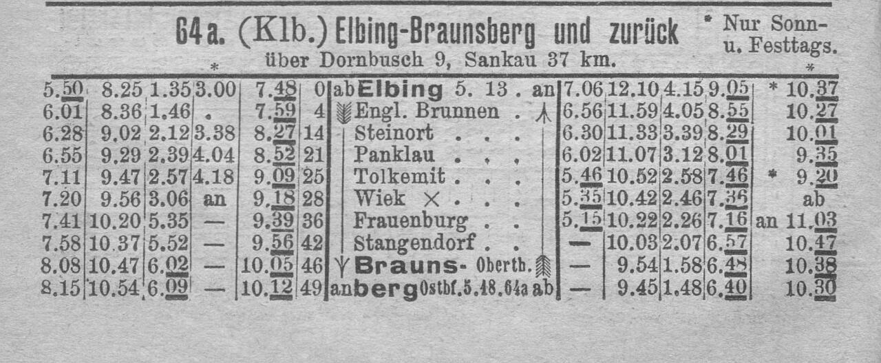 - Olsztyn Główny - Elbląg przez Braniewo i Frombork (pociąg obsługiwany przez szynobus)