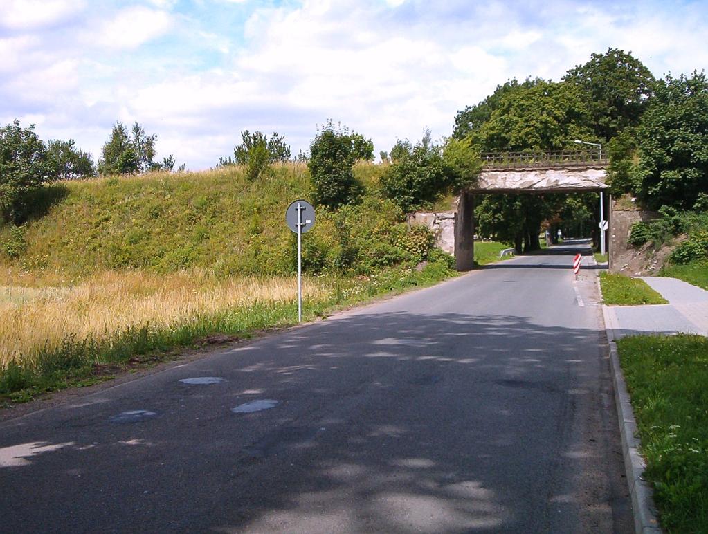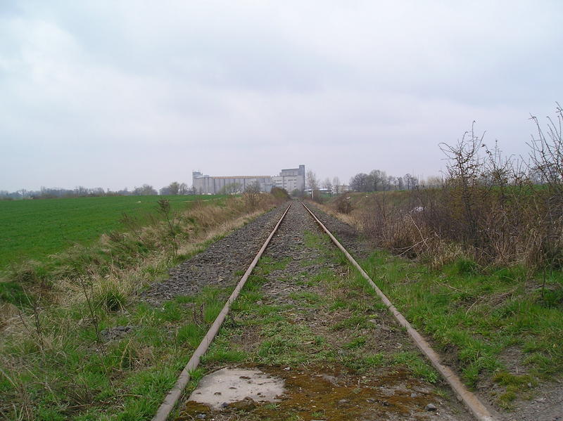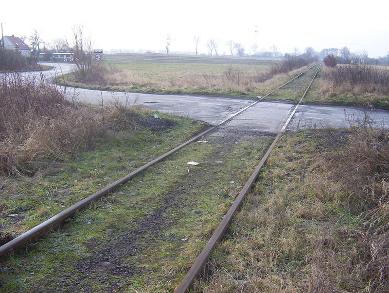 Istniała bocznica przecinająca dk5, jakieś 50m od skrzyżowania do fabryki. Zlikwidowana ok. 2005. Do dziś jest tam obniżenie jezdni.