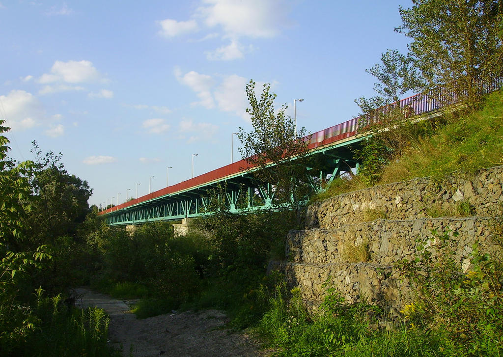 Most na Odrze, na pierwszym planie część odbudowana po powodzi 97.