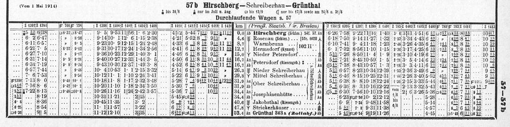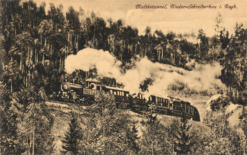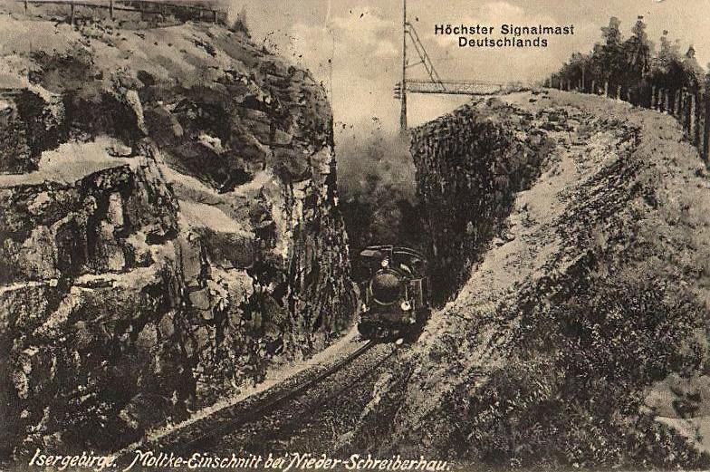 W 1911 państwo pruskie przystąpiło do elektryfikacji swojego odcinka Kolei Izerskiej, w ramach rządowego projektu Śląska Kolej Górska. Zastosowano zasilanie prądem zmiennym o napięciu 15 kV i częstotliwości 162/3 Hz. I wojna światowa wpłynęła na znaczne opóźnienie tego przedsięwzięcia, niemniej elektryfikację całego odcinka z Jeleniej Góry do Kořenova zakończono 15 lutego 1923.