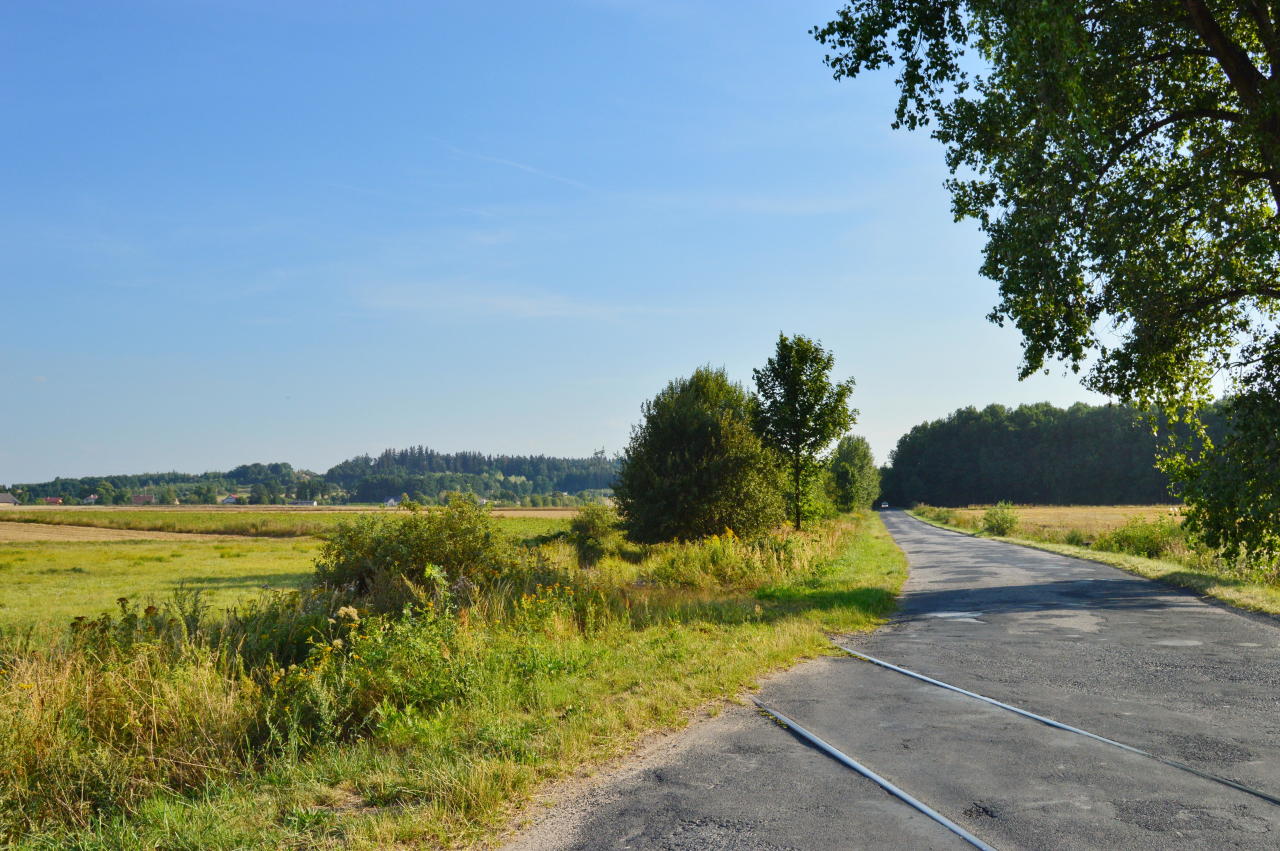 Słupek hektometryczny. Widok w kierunku Grodzca.