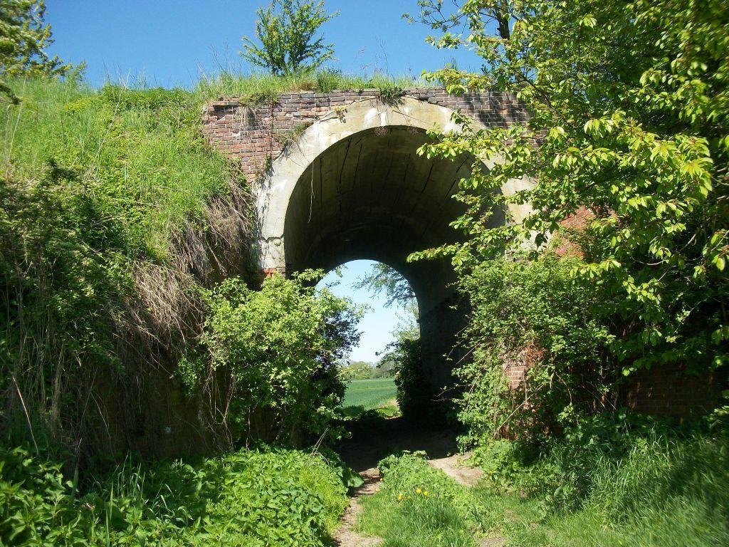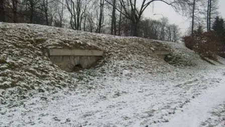 Nasyp kolejowy w dzielnicy Katarzynki w Opawie. Widoczne przepusty.