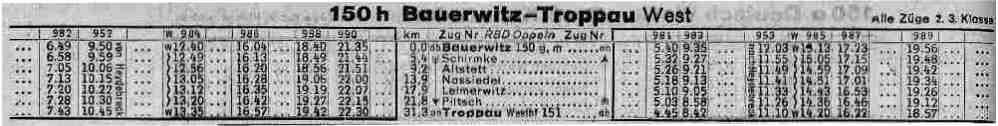Przedwojenny rozkład jazdy pociągów relacji Baborów - Opava Zapad.