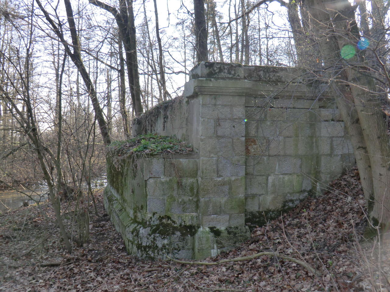 Przyczółek mostu kolejowego na linii 329 w lesie pomiędzy Osiekiem Grodkowskim a Radoszowicami.