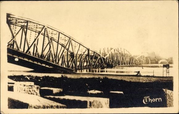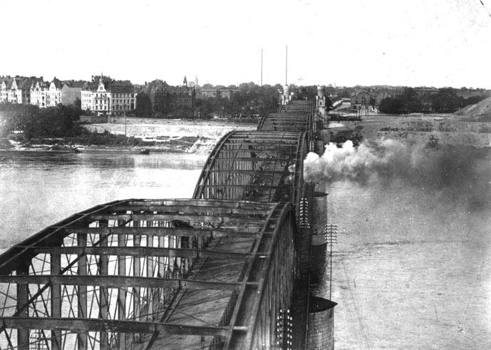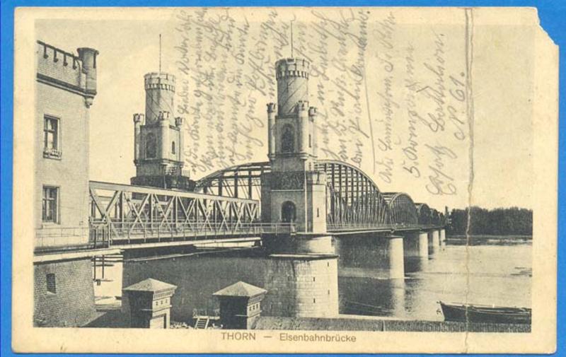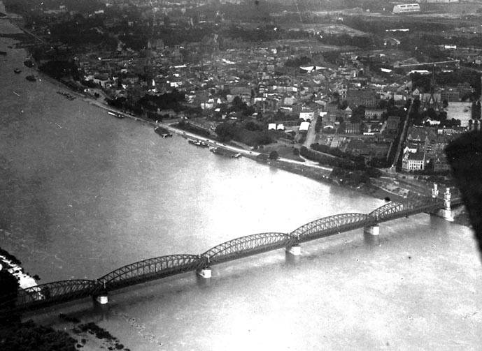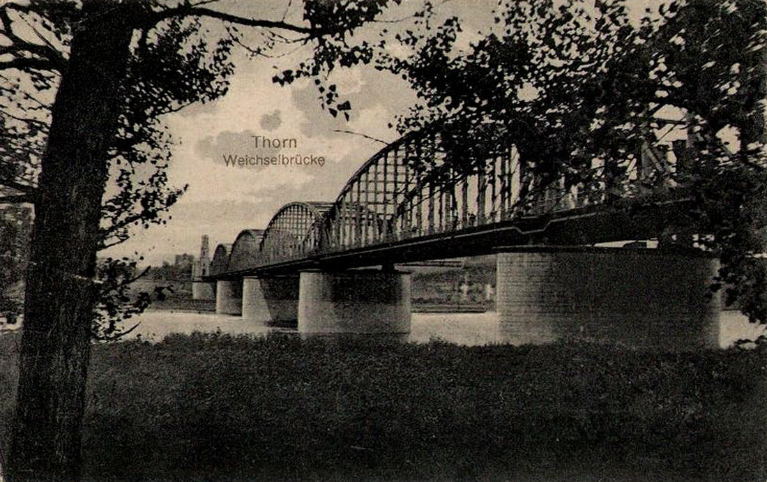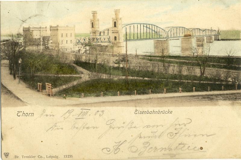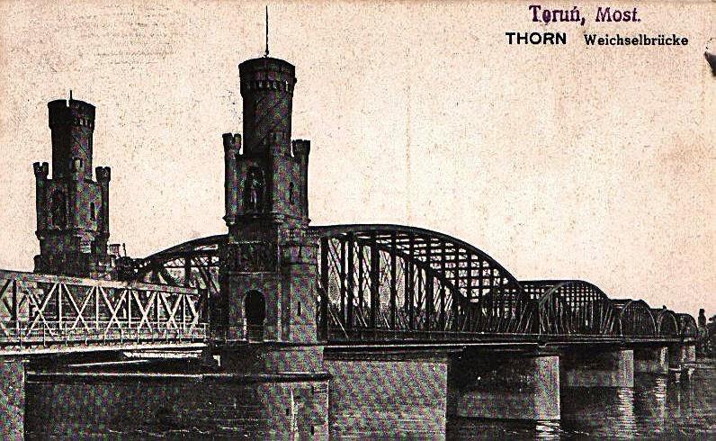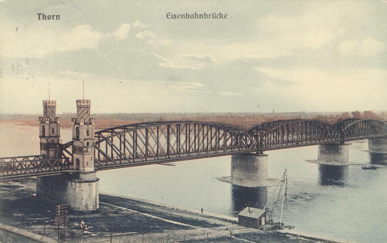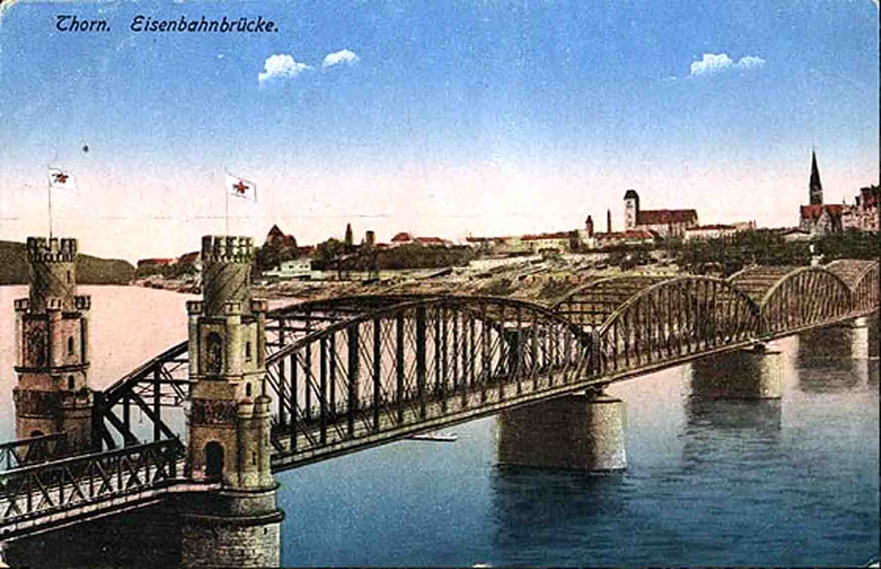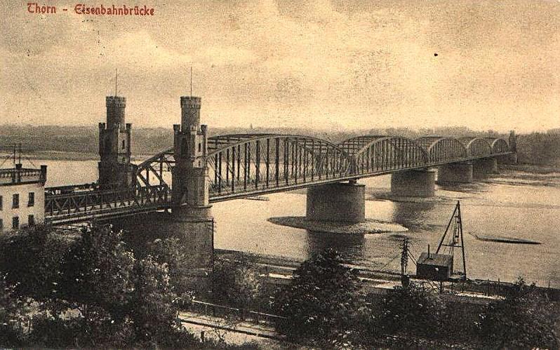 Toruń - most kolejowy przez Wisłę. W lewo Toruń Miasto, w prawo Toruń Główny.