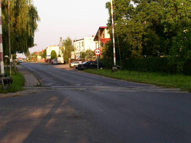 Widok w kierunku głównego. Tutaj linia prezentuje się bardzo dobrze. Widoczna budka dróżnika oznaczona literą "T" zamknięta, ale w stanie dobrym. Szlabanów jest 5, 4 dla krajowej "5" widocznej na zdjęciu i 1 dla dojazdu od działek.