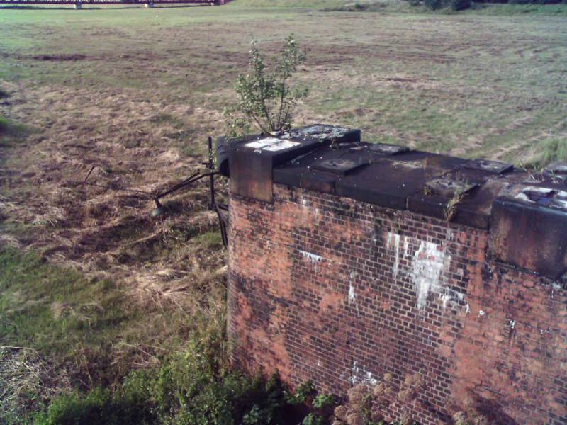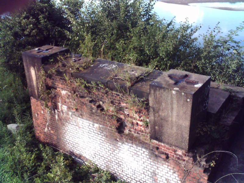Pierwszy ceglany filar mostu na Odrze - zniszczonego w czasie wojny i nie odbudowanego już po 1945, trzecia nitka mostu była w zarządzie linii legnicko-rawickiej, filar na brzegu od strony Ścinawy.