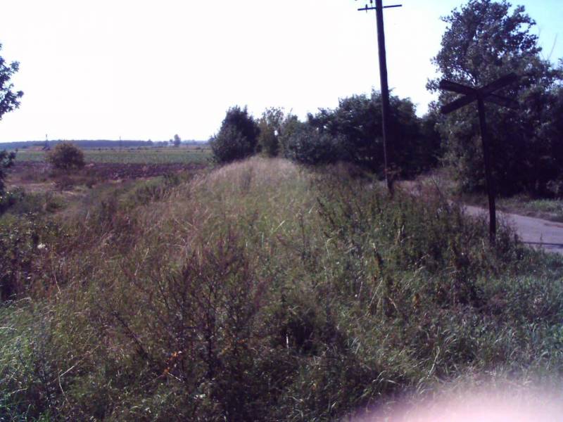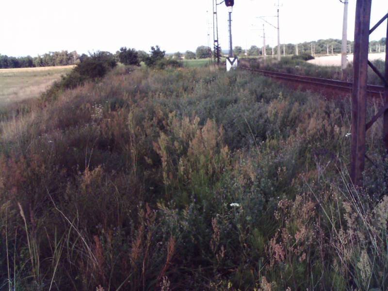 Nasyp linii w kierunku Rawicza. Z boku pozrywane druty telefoniczne.