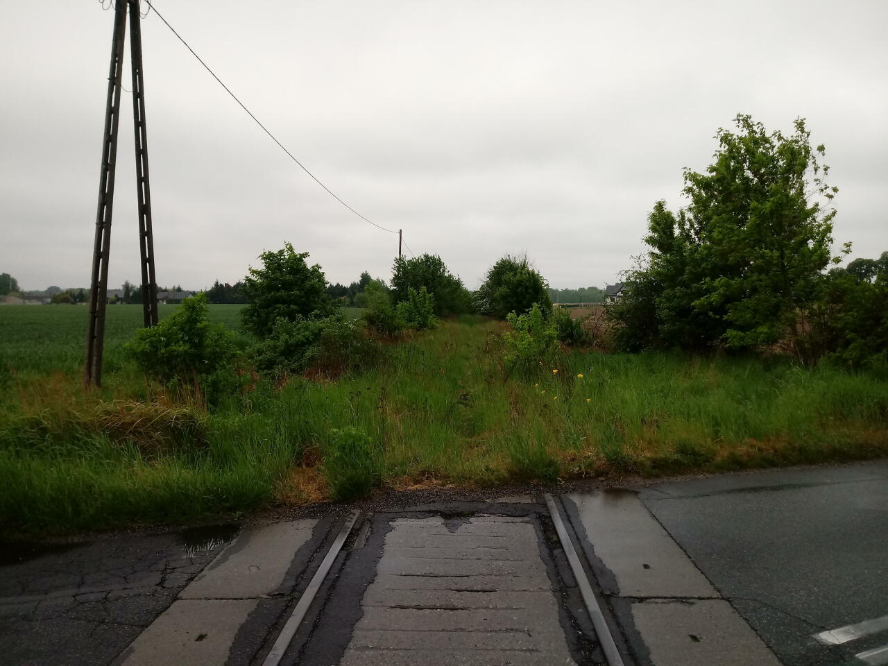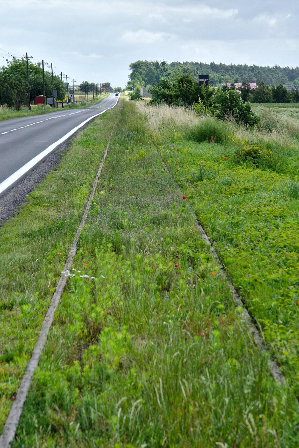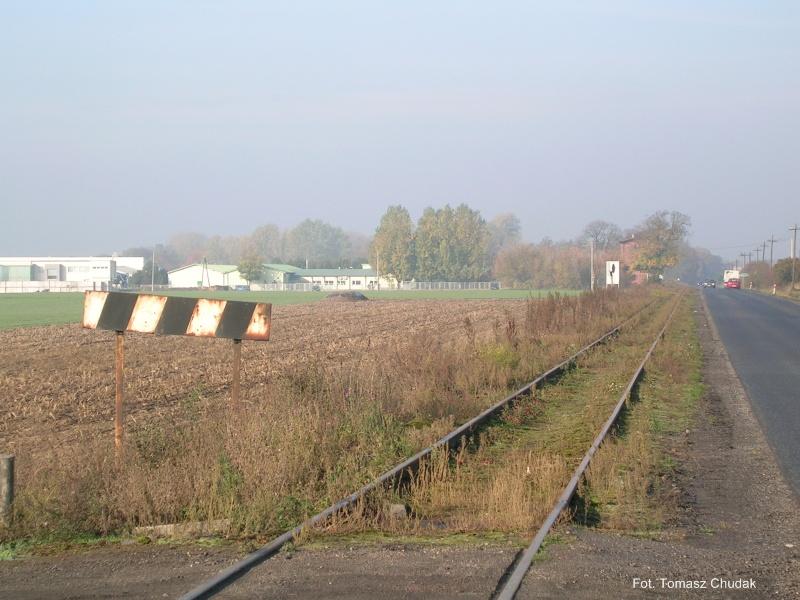 Zdjęcie wykonane w Chromcu, na przejeździe kolejowym (lokalna droga łącząca Chromiec z Chwałkowem K.) - widok w kierunku Śremu/Czempinia. Widoczne szyny kolejowe.
