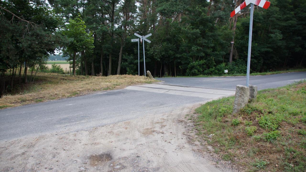 Przejazd kolejowy na drodze pomiędzy Czempiniem a Borowem. Widok w kierunku przystanku Borowo.