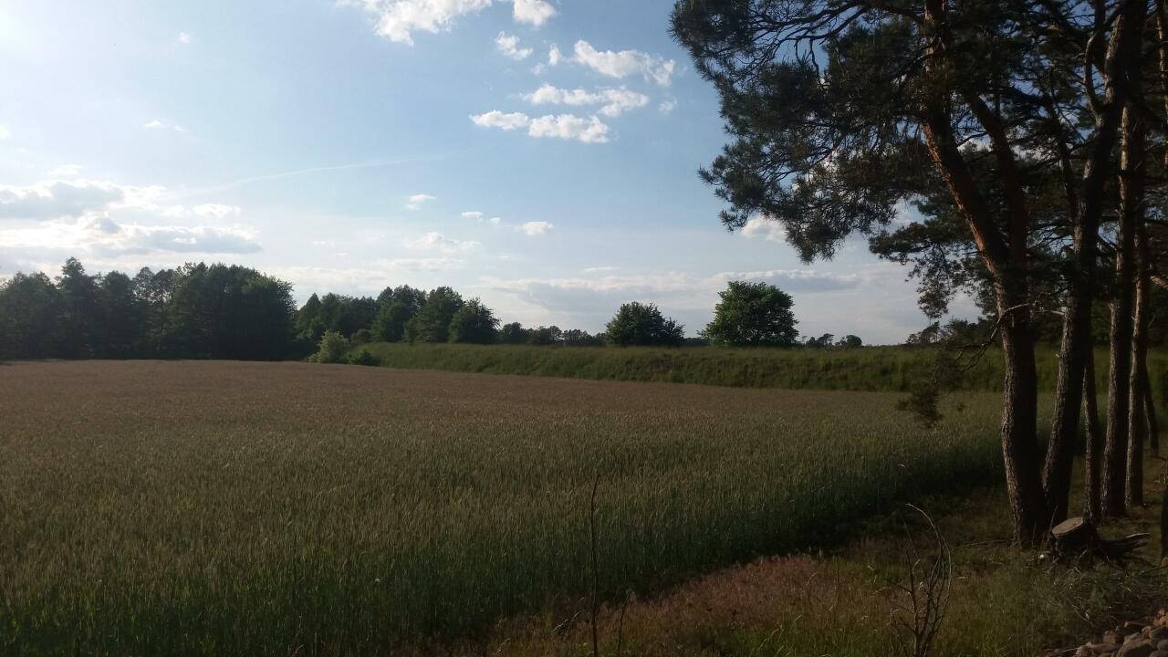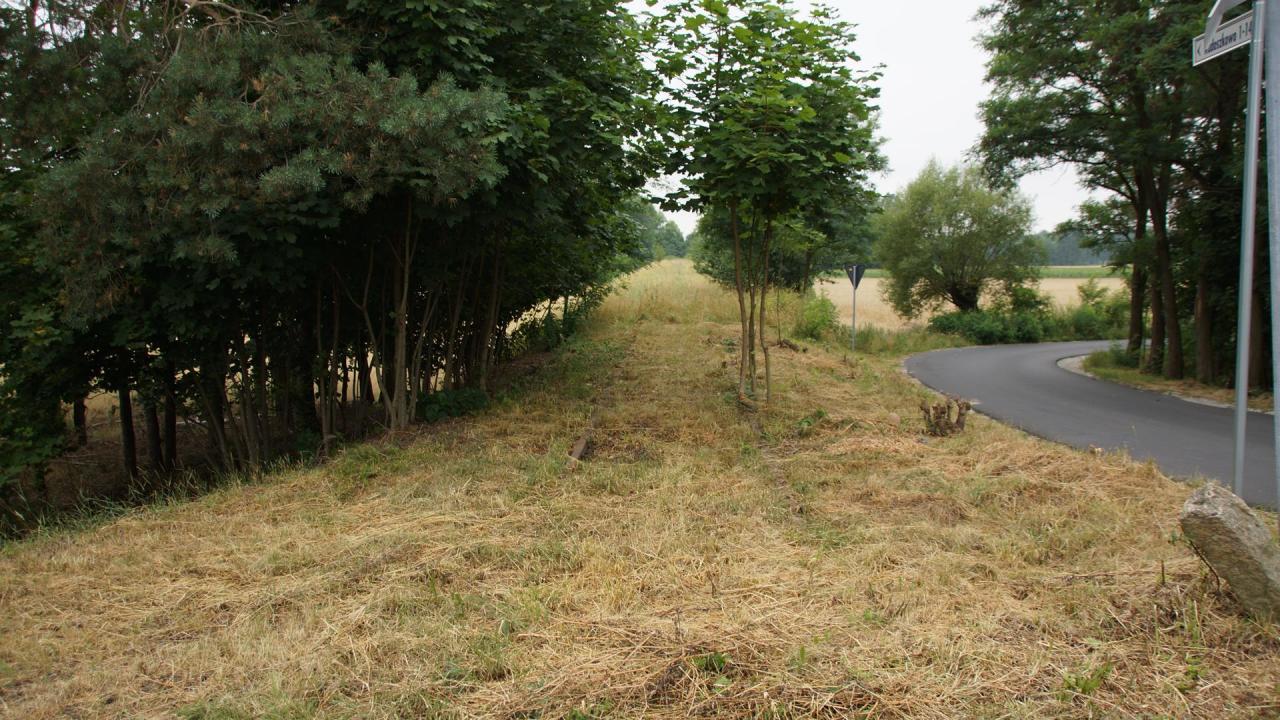 Nasyp kolejowy w okolicach miejscowości Charłub. Orientacja zachodnia (w kierunku Śremu).
