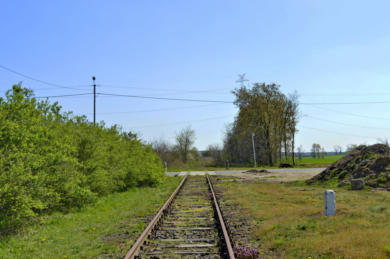 Tagi: infrastruktura torowa/rozjazdy/równie stacyjne, panoramy/widoki ogólne, przejazdy i przejścia naziemne (drogowe), szlak (trasa)/pojedyncze tory