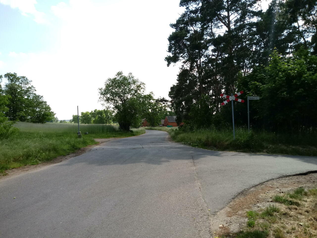 Przejazd kolejowy na lokalnej drodze we wsi Radoszkowo. W lewo Książ, w prawo Chwałkowo.