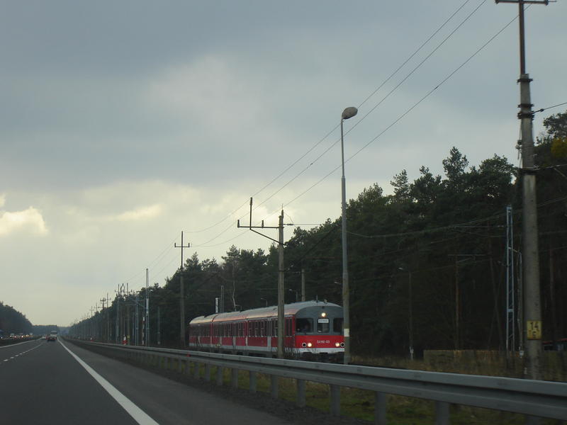 Fragment linii Szczecin Dąbie - Świnoujście Port tuż przed stacją Rurka. Na lewo stacja Rurka, na prawo Szczecin. Za linią kolejową droga ekspresowa nr S3 i S6 w jednym:).
