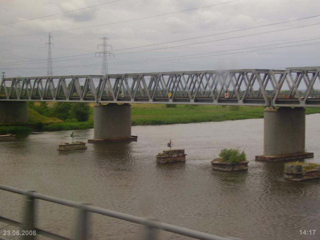 Most kolejowy na cieśninie Dziwna niedaleko przed stacją Wolin Pomorski. Widok z mostu w ciągu krajowej 3-jki przebiegającego równolegle.