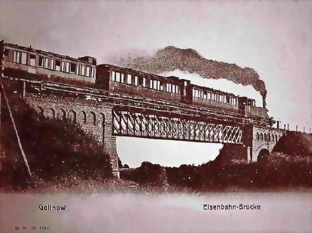 Most na rzece Ina w Goleniowie, pociąg do Szczecina.