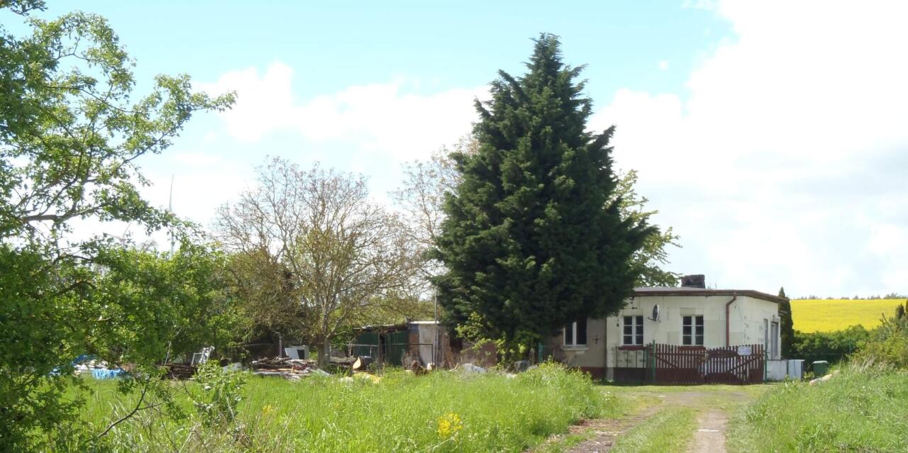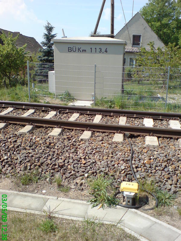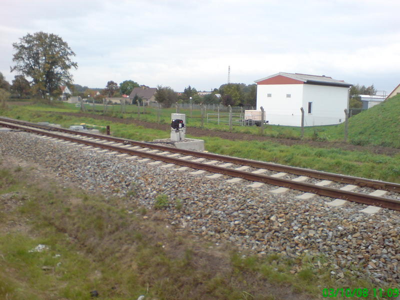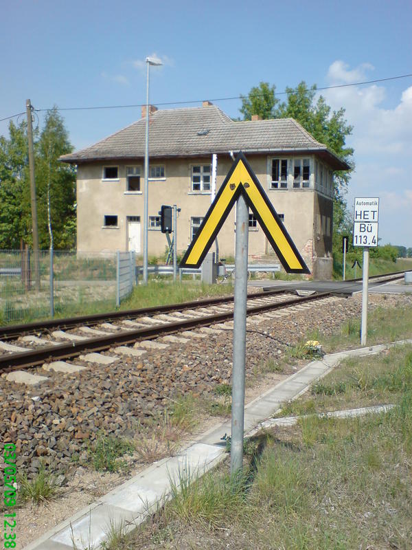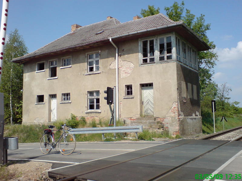 Tantow Vorwerk - były i zdewastowany posterunek odstępowy od frontu i znak rozpoczynający ograniczenie prędkości.