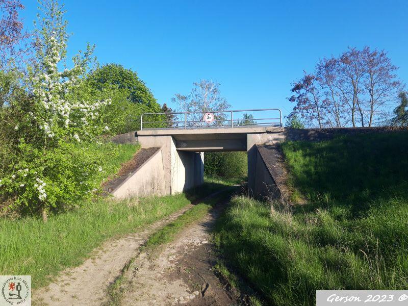 Kołbaskowo. Wiadukt niedaleko granicy (z lewej), w prawo Kołbaskowo; ok. km 8,5.