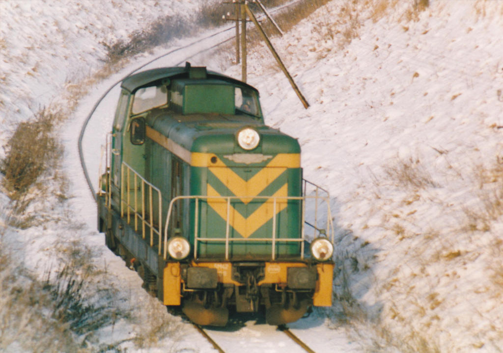 Zdjęcia wykonane w grudniu 2000 roku na 4 kilometrze linii od Zwierzynia w kierunku Strzelec Kraj. Lokomotywa wraca luzem po zostawieniu wagonów w na stacji w Strzelcach i cystern w bazie CPN.