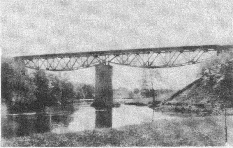 Wysadzone, zachodnie przęsło mostu na Gwdzie w Płytnicy. Już go nie ma. Widok w kierunku zachodnim (stacja Płytnica/Wałcz).