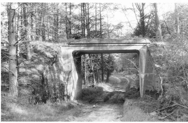 Wiadukt nad nieistniejącą linią kolejową Więcbork - Wałcz przez : Złotów, Węgierce, Płytnice (okolice Wiesiółki).
