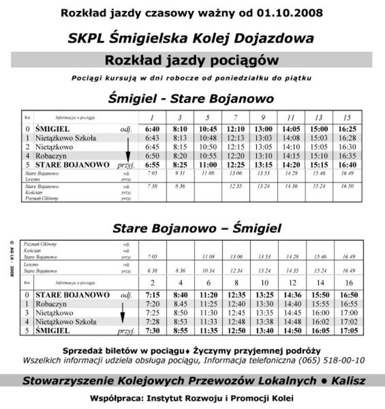 Aktualny rozkład jazdy kolejki zamieszony na stronie www.skpl.kalisz.pl/rjp.shtml