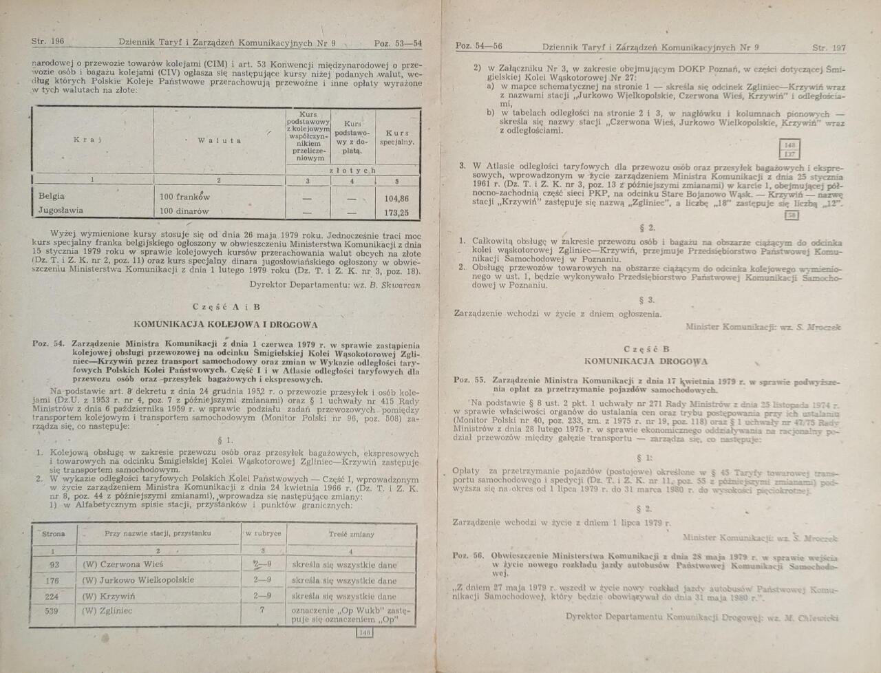 Zarządzenie Ministra Komunikacji dotyczące zawieszenia przewozów pasażerskich i towarowych na odcinku Zgliniec - Krzywiń (pozycja 54).