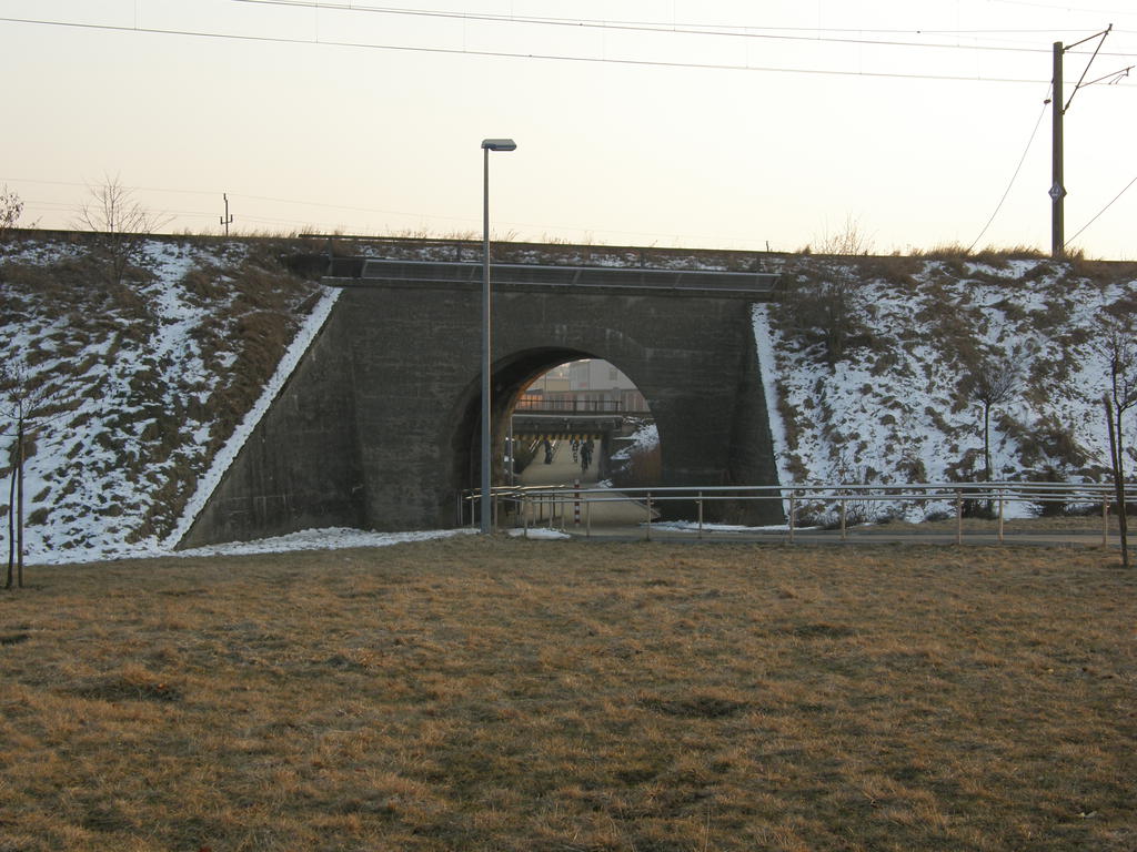 Wiadukt 0,4 km. Dwa wiadukty jednoprzęsłowe nad przejściem pieszym (dawniej koleją wąskotorową). Bliżej dwa tory szlakowe linii Ostrów Wielkopolski - Leszno, dalej tor łącznicy Durzyn - Krotoszyn. W lewo Ostrów Wielkopolski, w prawo Leszno. 163,8 km/1,4 km.