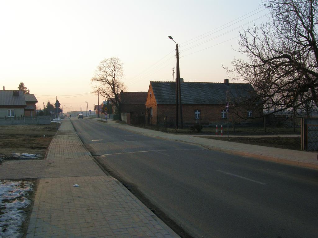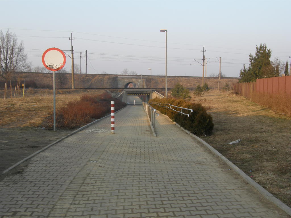Przejazd w ciągu ulicy Wiejskiej. Przebieg dawnego toru wyznacza chodnik w prawo. W lewo początek linii, w prawo Pleszew. 0,6 km.