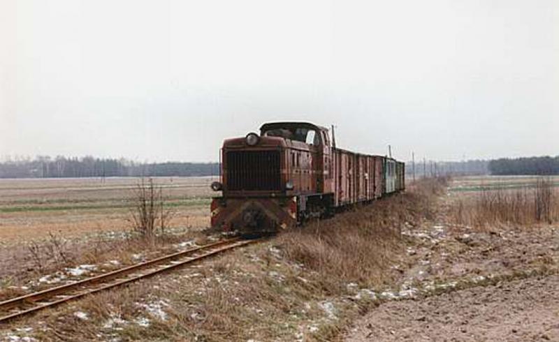 Lyd2 ze składem mieszanym podąża do Witaszyc. Widoczny wiadukt nad drogą Poznań-Katowice już nie istnieje. Ciężko uszkodzony zimą 1992 r. przez próbującego pod nim przejechać TIR-a nigdy nie został wyremontowany. Witaszyce zostały odcięte od reszty linii, co przyspieszyło decyzję o jej likwidacji. (zdjęcie pochodzi z internetowej strony info m-ta Zagórowa).